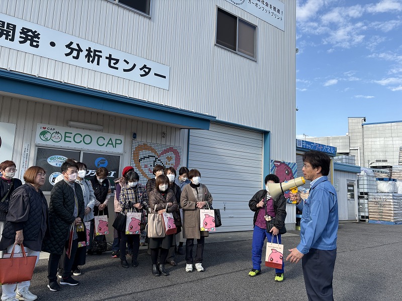 JA西三河 女性部のみなさまが工場見学に来てくださいました! 2025/12/11 工場見学 JA西三河 女性部の17名のみなさまが工場見学に来てくださいました。みなさん元気で明るくて、こちらまでパワーをいただきました!これからエコキャップ運動を始めるとのことで、見学中はリサイクルの流れや分別について、とても真剣に質問してくださり、学ぶことの多いひとときでした。和やかで楽しい時間をありがとうございました。これからのキャップの持ち込みを、スタッフ一同楽しみにしております。